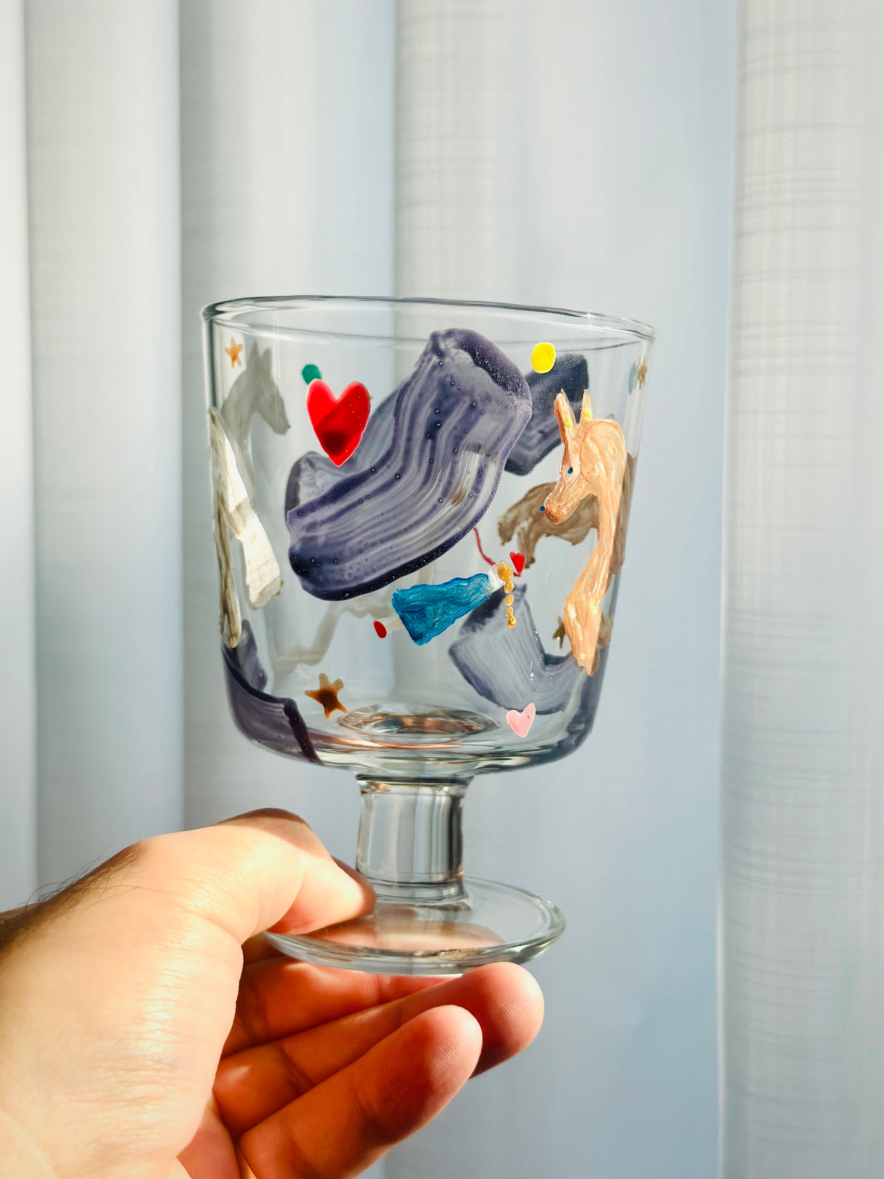 一点、一点 絵付けを施したゴブレットグラスです。