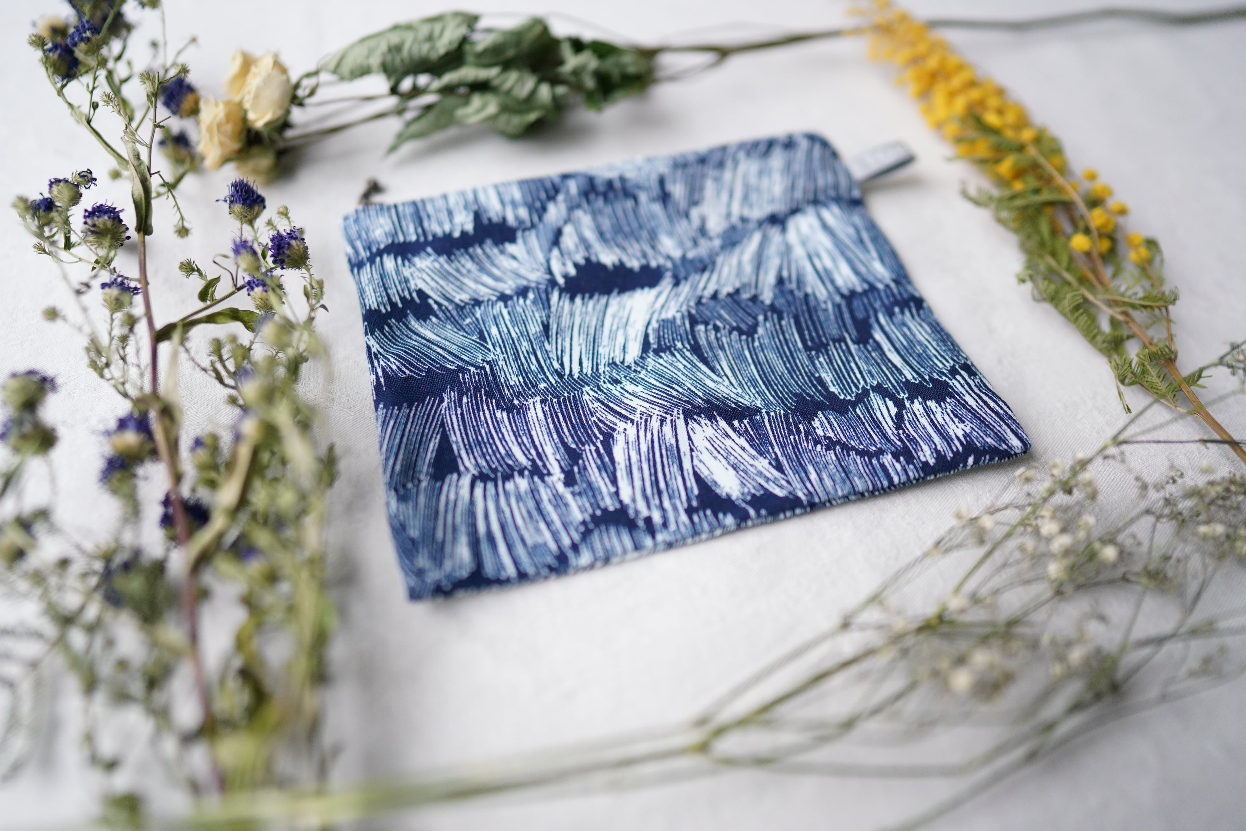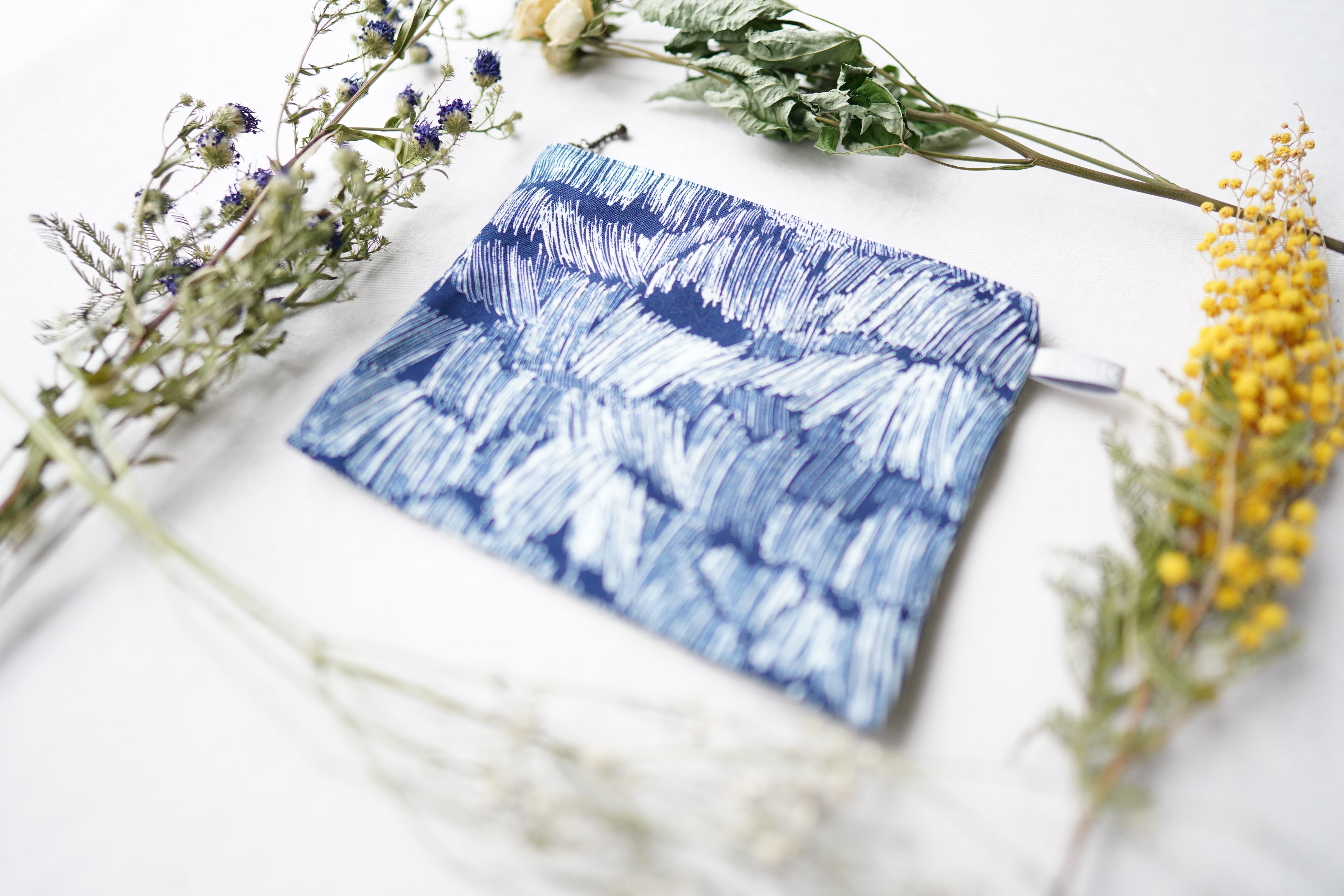 「welcome rain」慈雨 藍捺染 フラットポーチ