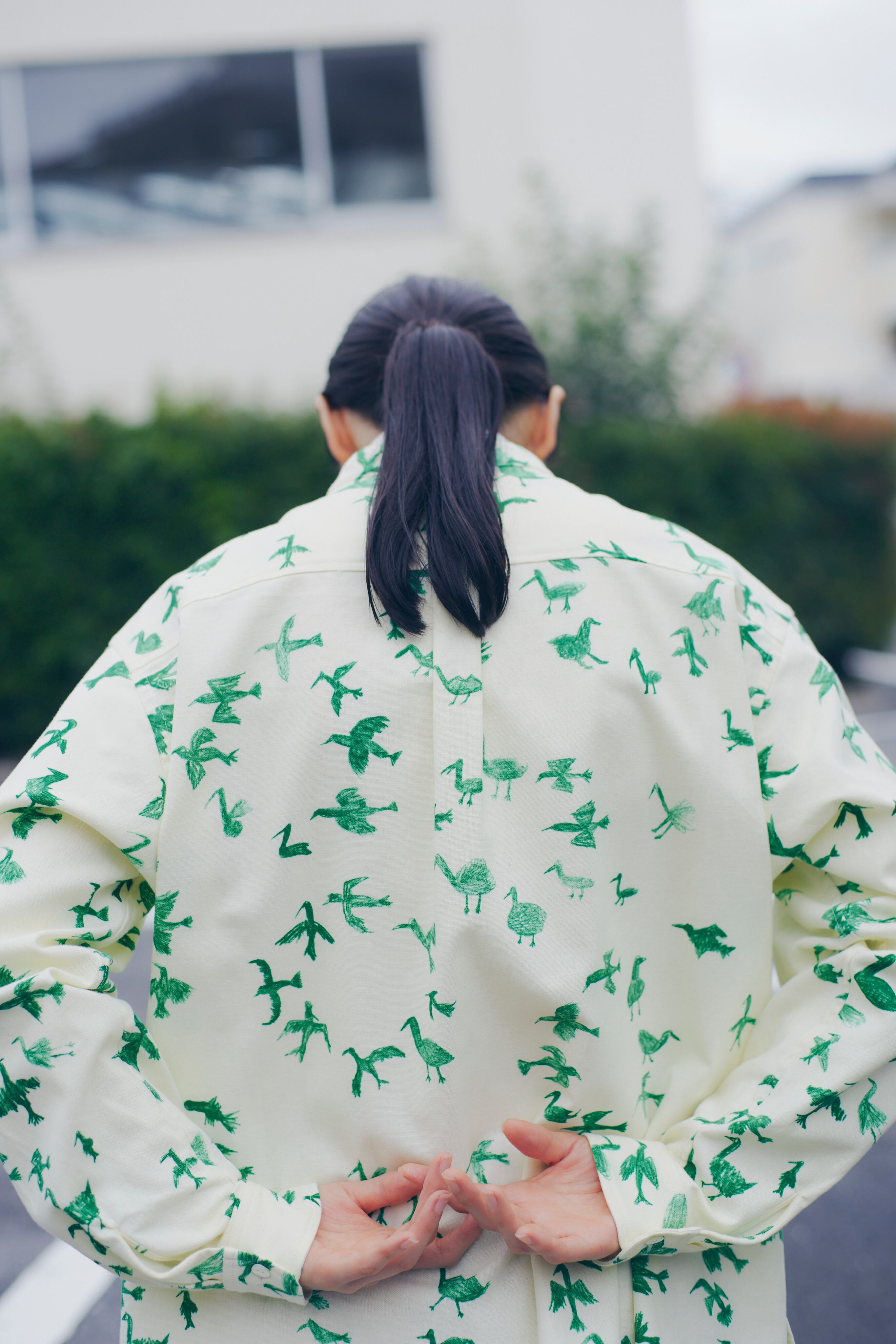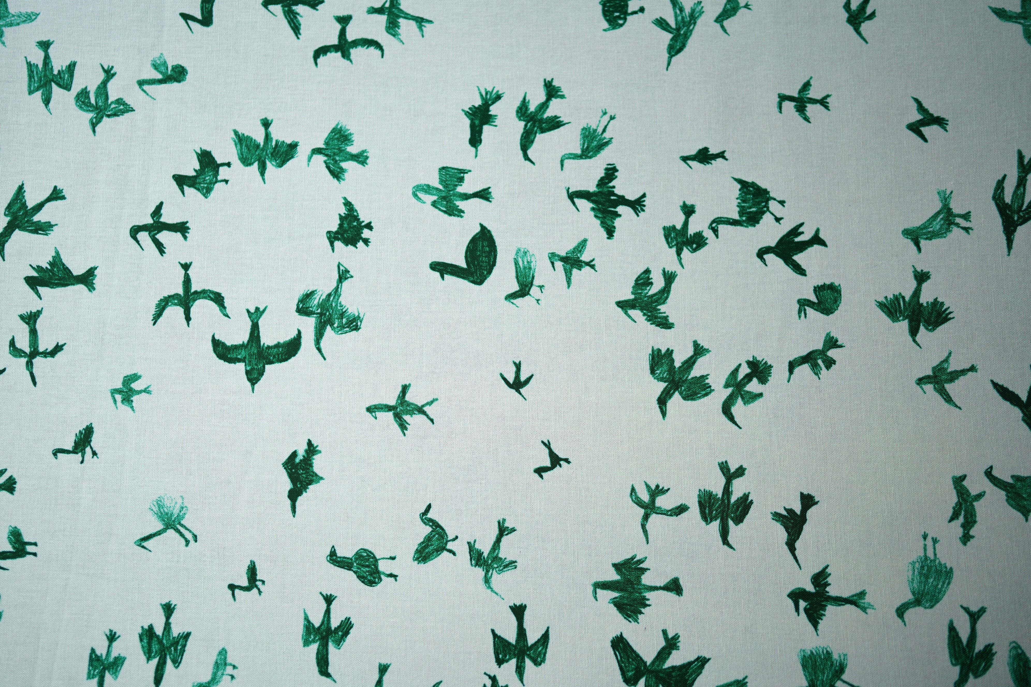 この柄には、たくさんの円を描いた鳥の大群がいます。