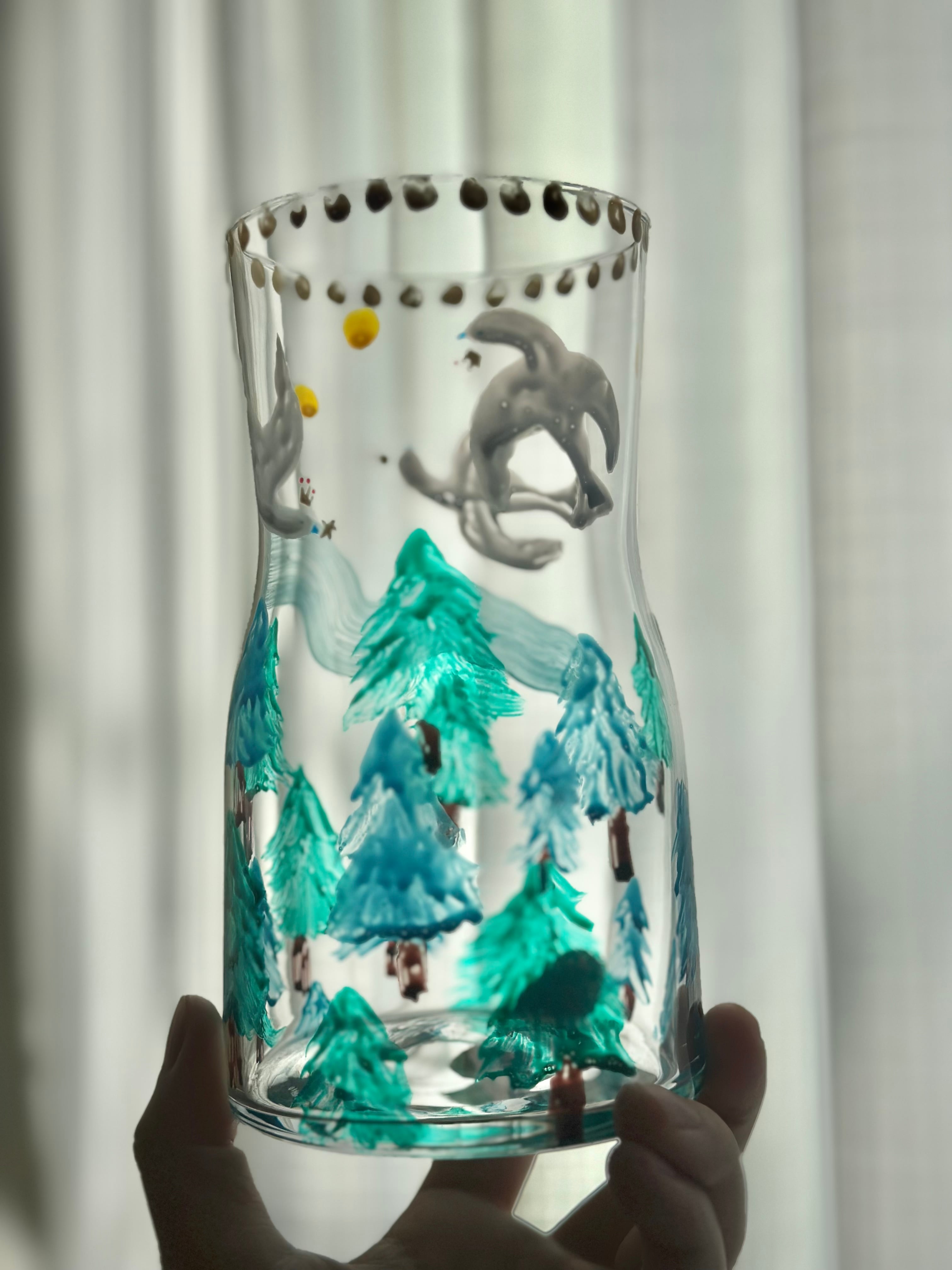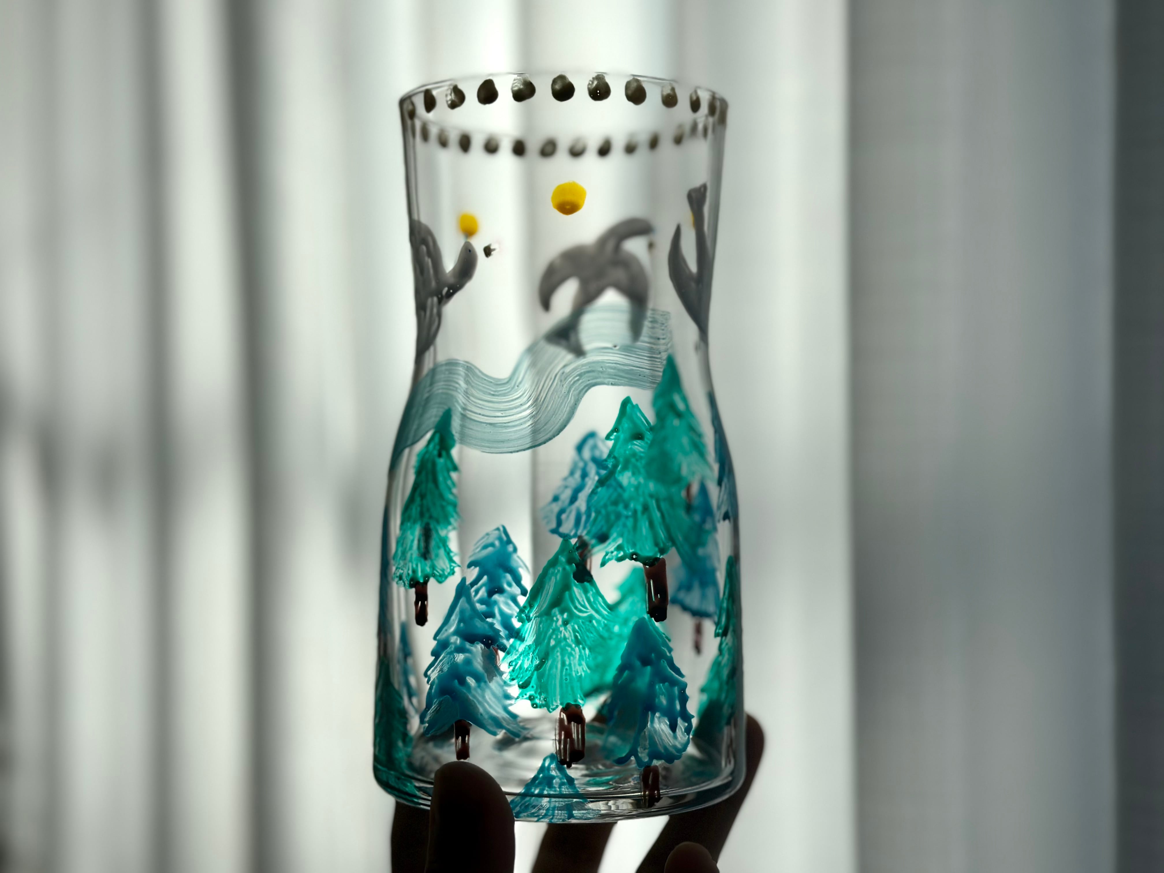 ★ガラス花瓶 森×白い鳥 インテリア 一点モノ